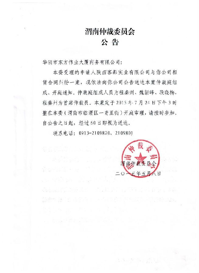 [2014]渭仲字第45號案件組、開庭通知及公告