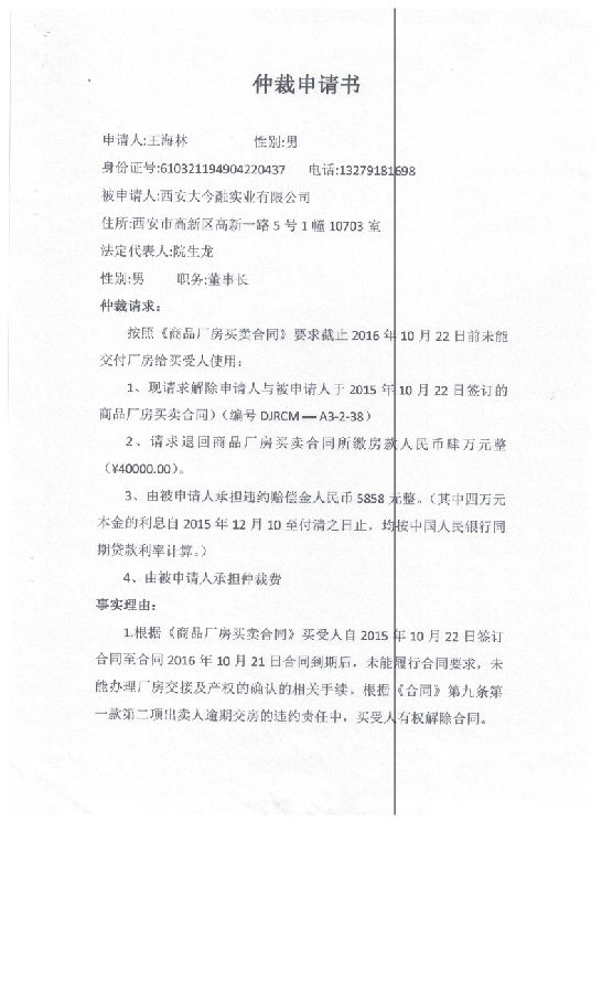 王海林與西安大金融實(shí)業(yè)有限公司一案公告