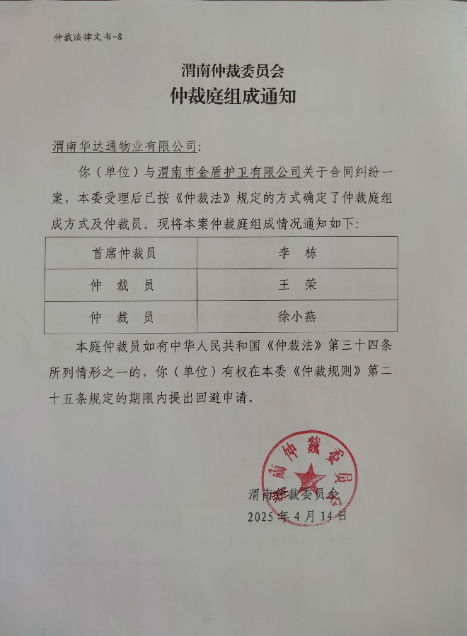 渭南華達(dá)通物業(yè)有限公司與渭南市金盾護(hù)衛(wèi)有限公司合同糾紛案公告